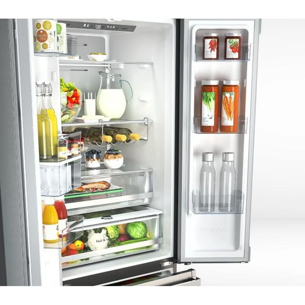 LED Displej Elektronsko upravljanje iza vrata Automatsko odmrzavanje Alaram za otvorena vrata Total No frost sistem hlađenja Multi Air Flow sistem kruženja hladnog zraka LED osvjeteljenje frižidera i zamrzivača Dispenzer za hladnu vodu i ledomat |