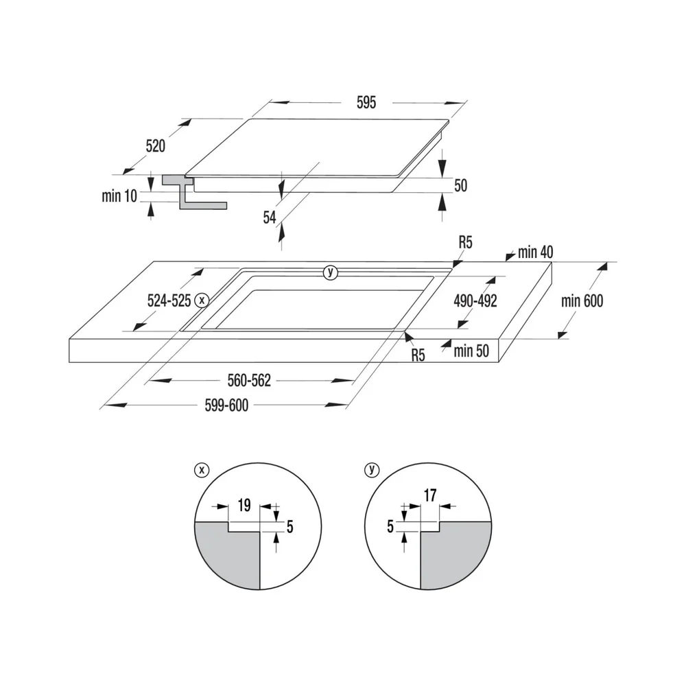 Minimalna širina niše za ugradnju 560 mm