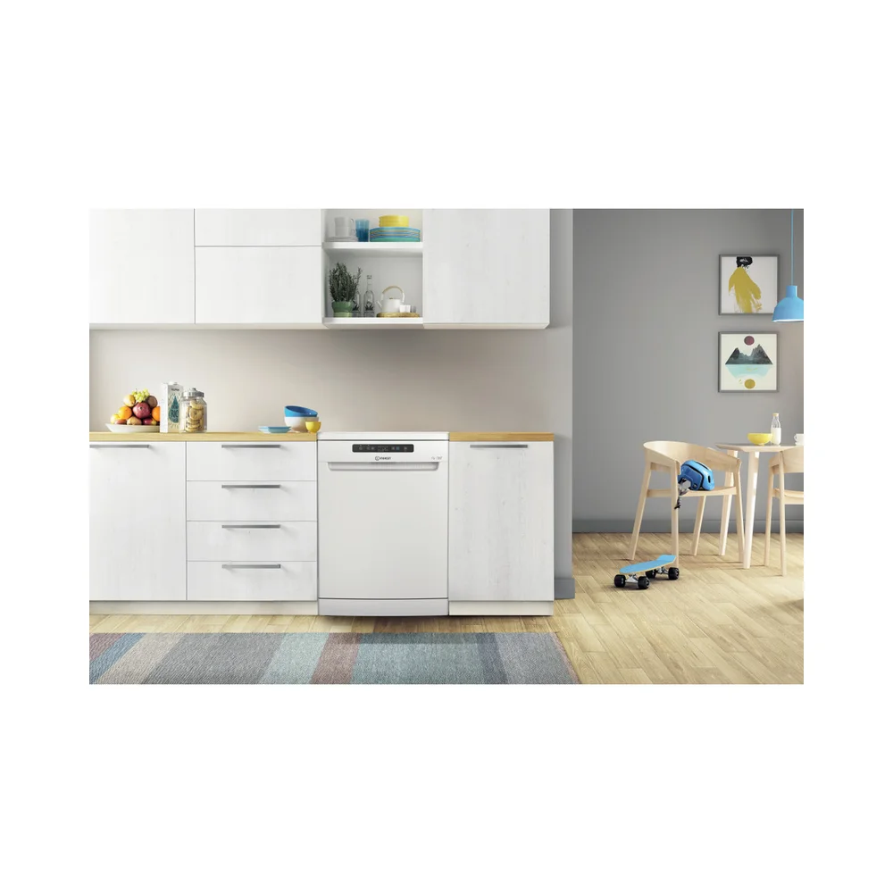Karakteristike ove Indesit perilice posuđa su: perilica posuđa u punoj veličini s izvanrednim rasporedom dostupnih mjesta. Smanjena potrošnja vode. Bijela boja. Prikladni digitalni brojač vremena koji će vas obavijestiti o završetku ciklusa pranja. Prikladne nožice, za savršenu stabilnost na neravnim podovima i površinama.