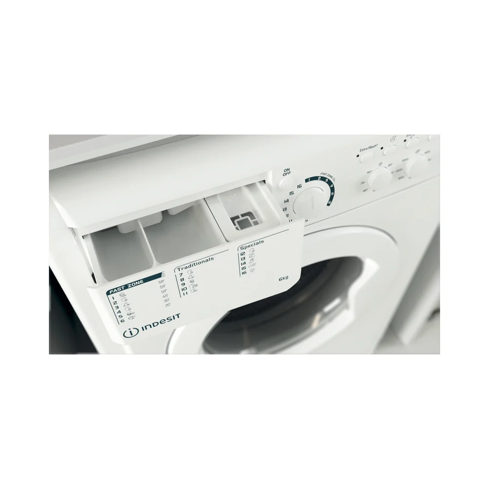 Karakteristike ove Indesit samostojeće perilice rublja s prednjim punjenjem su sljedeće: prostrani 6,0kg kapacitet. Brzi i učinkoviti 1200 broj okretaja u minuti. Bijela boja.