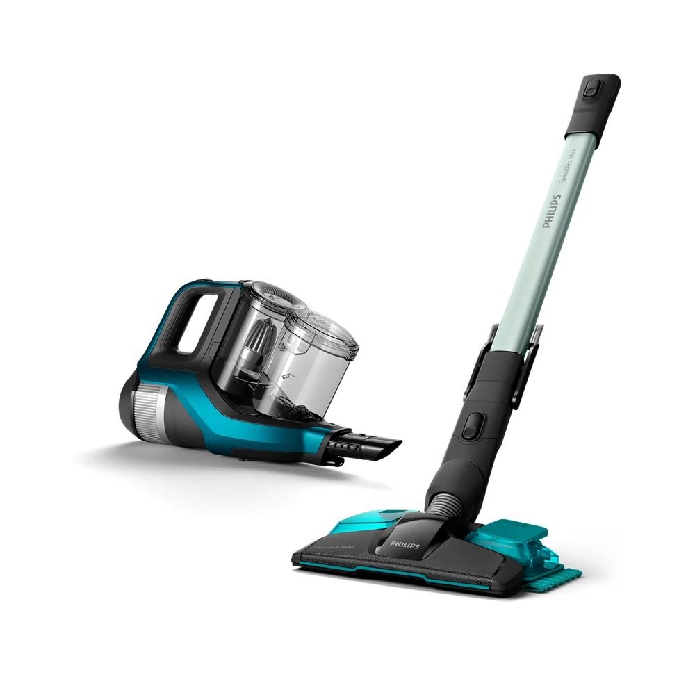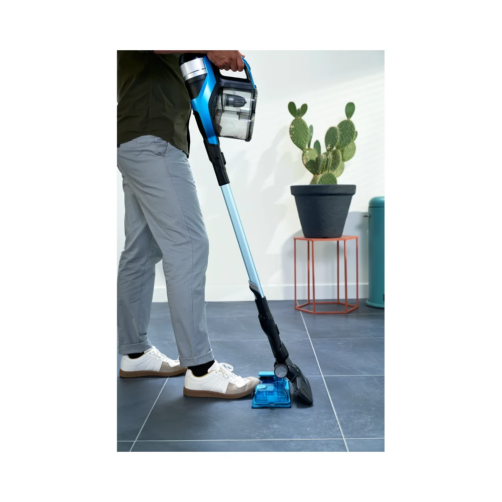 Završite s poslom brže uz naš bežični usisavač 3-u-1. Naš snažni usisni nastavak od 360 stupnjeva brže usisava prašinu i prljavštinu sa svih strana. Od tvrdih podova do tepiha; neka svaki pokret bude važan. Jedinstveni sustav za usisavanje i vlažno brisanje omogućava uklanjanje više vrsta prljavštine odjednom.