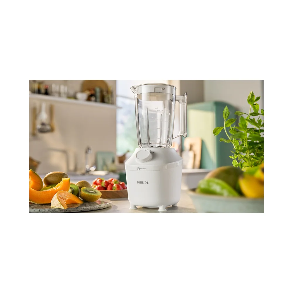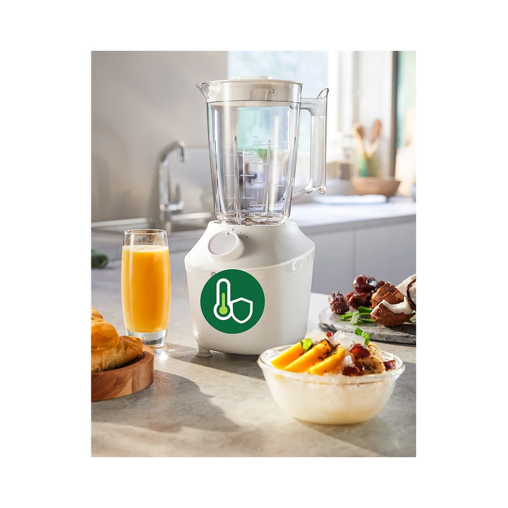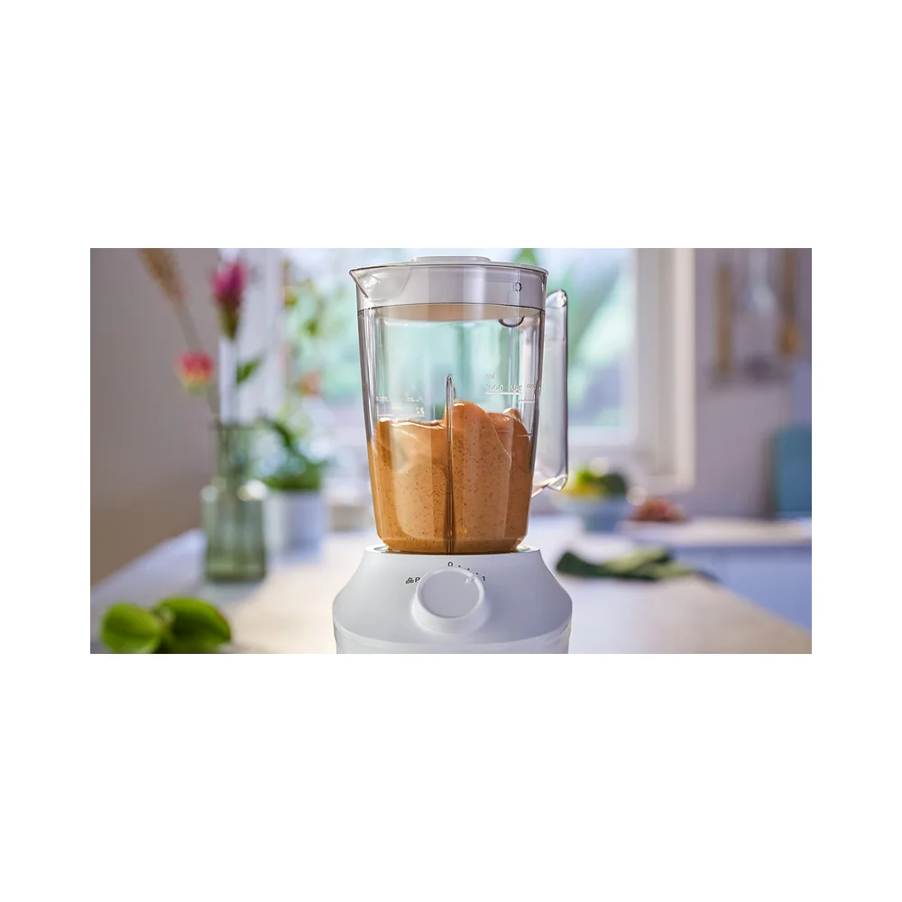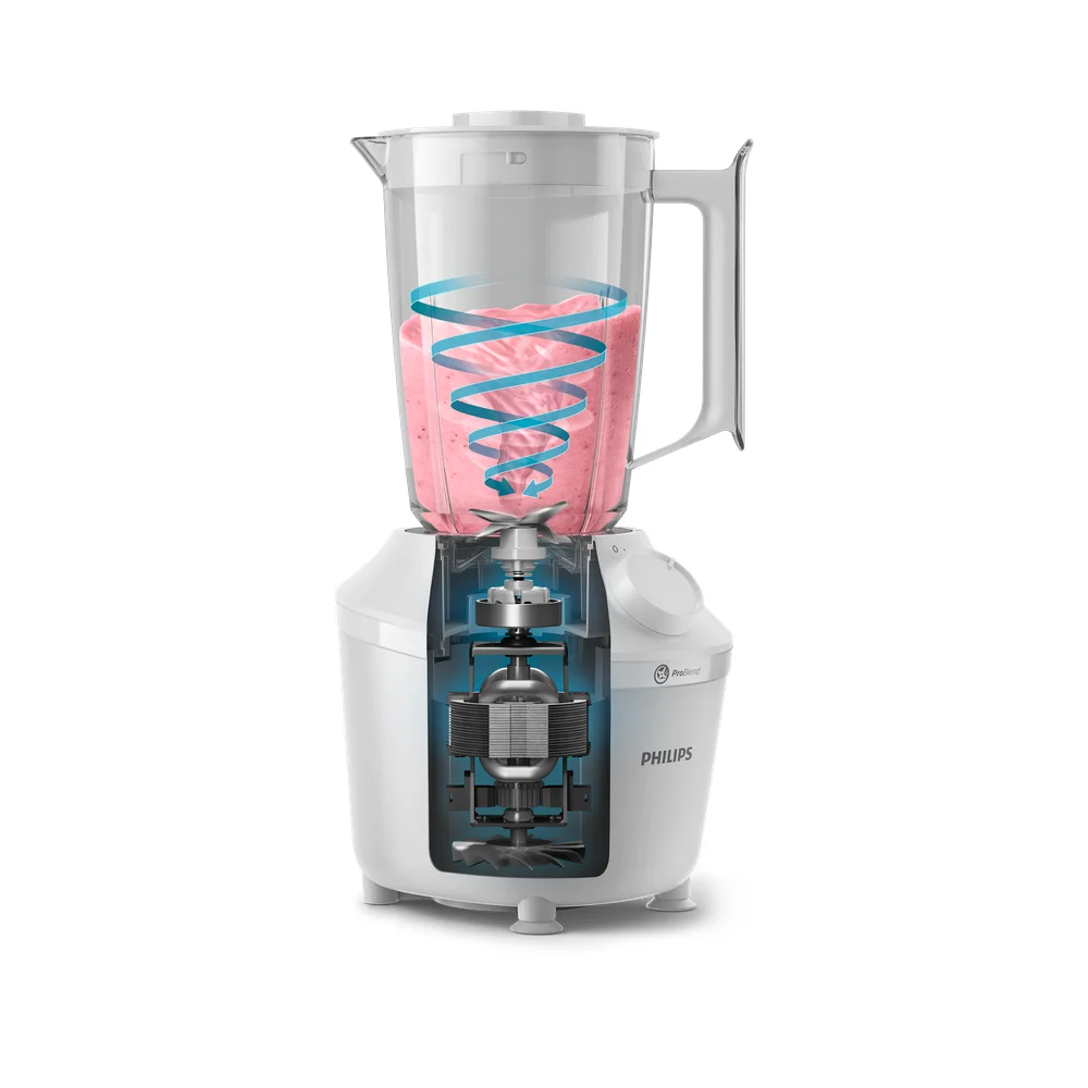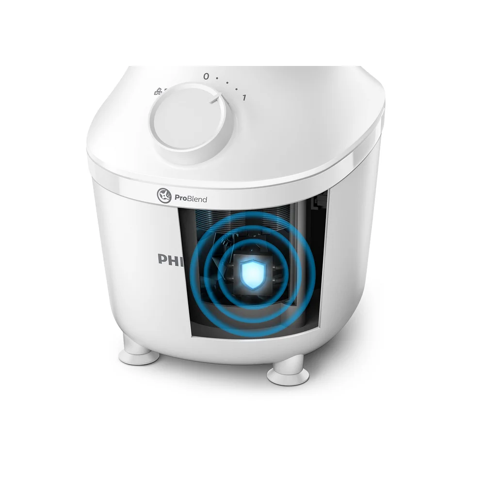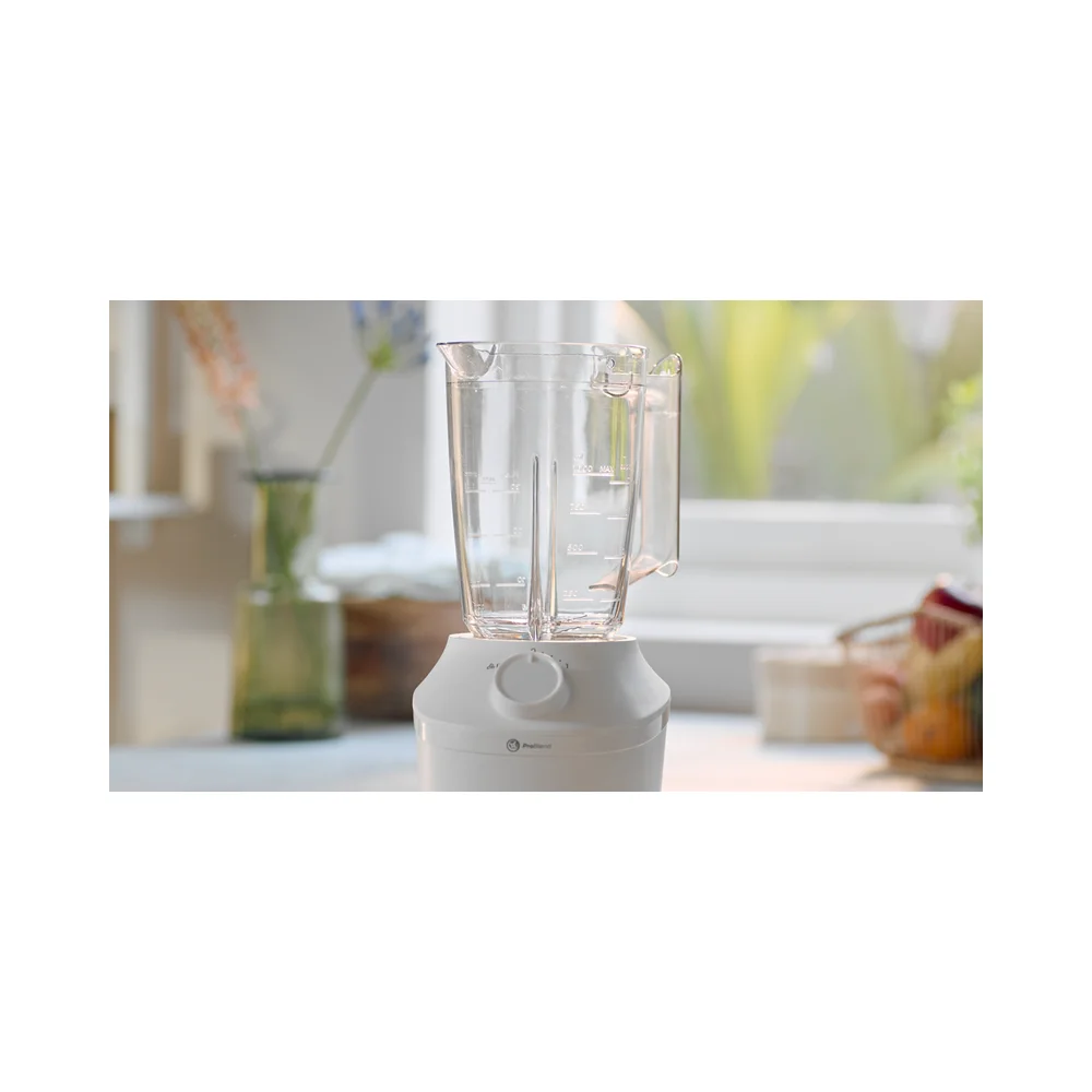 Jedinstveni sustav ProBlend savršeno kombinira 3 tehnologije, prilagođene glatkom miješanju bez grudica u samo 45 sekundi*. Motor snage 450 W pokreće tok miješanja koji jednoliko miješa sve sastojke, dok je inovativan dizajn rezača posebno oblikovan kako bi maksimizirao područje rezanja. Na kraju, ali jednako važno, vrč je osmišljen s jedinstvenim rebrima kako bi sastojke neprekidno vraćao u tok miješanja.