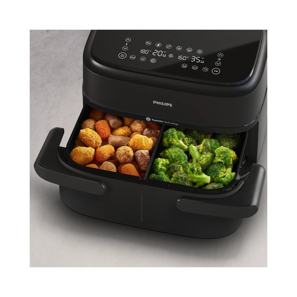 Otkrijte aparat Airfryer s dvije košare i personaliziranim receptima u aplikaciji HomeID. Uživajte u detaljnim uputama i pronađite stotine ukusnih jela s prilagođenim postavkama za vaš aparat Airfryer.