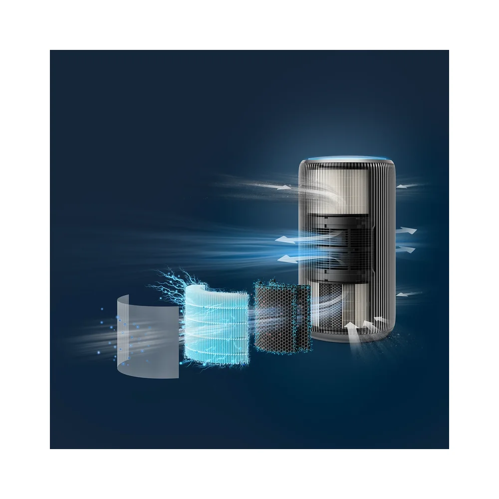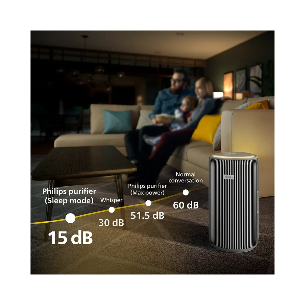 Uživajte u čistom, bezbednom vazduhu kod kuće, sada 35% tiše! Naš dizajn sa dva ventilatora pruža više snage uz kompaktne dimenzije, za prečišćavanje još većih prostora za nekoliko minuta. Sa elegantnim dizajnom, malom potrošnjom energije i pametnom kontrolom pomoću aplikacije, savršeno se uklapa u vaš dom.