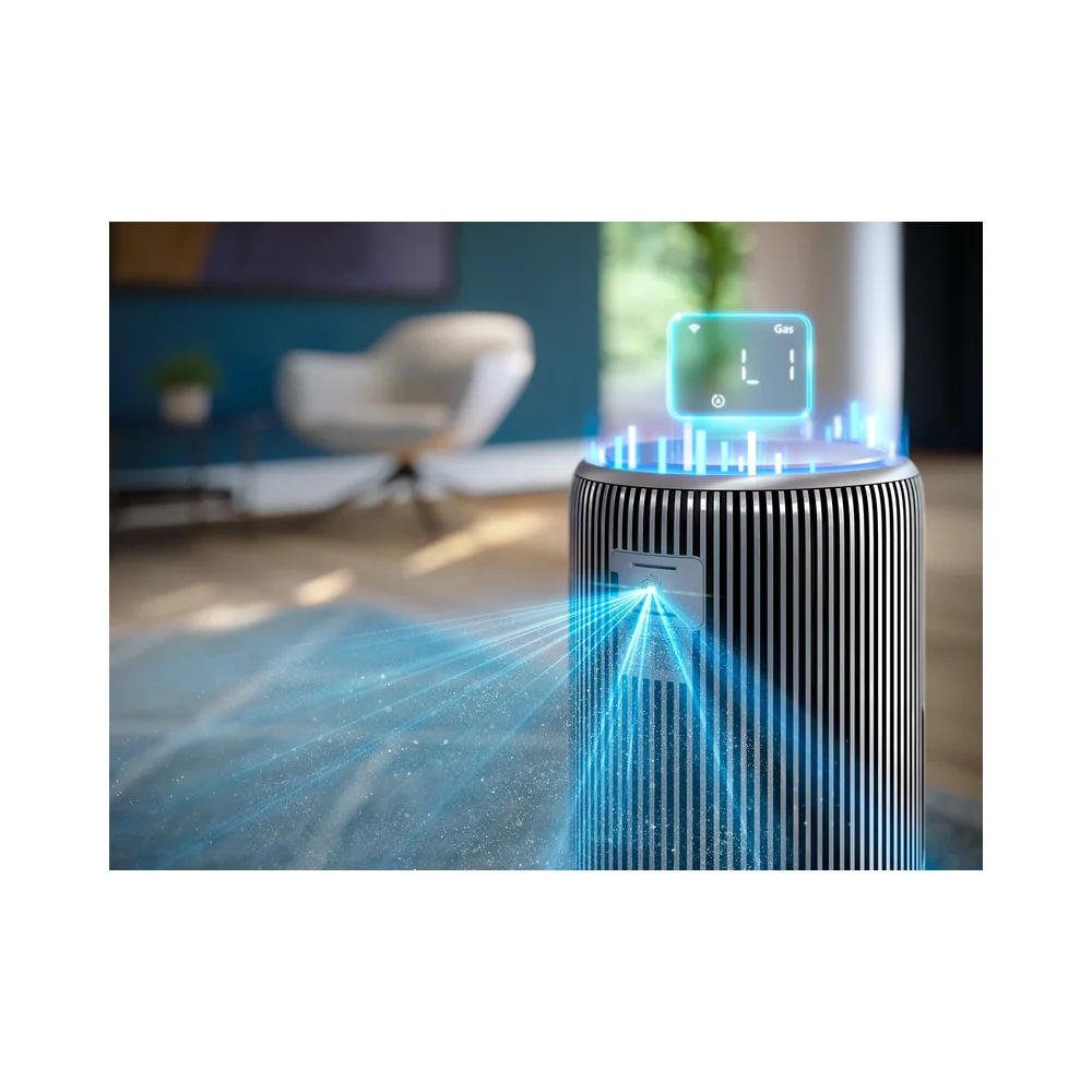 Tehnologija AeraSense skenira vazduh 1000 puta u sekundi radi detektovanja zagađivača i gasova. Izveštava o kvalitetu vazduha u realnom vremenu na displeju proizvoda ili u aplikaciji. U automatskom režimu, uređaj inteligentno bira pravu brzinu radi reagovanja na svaku situaciju.