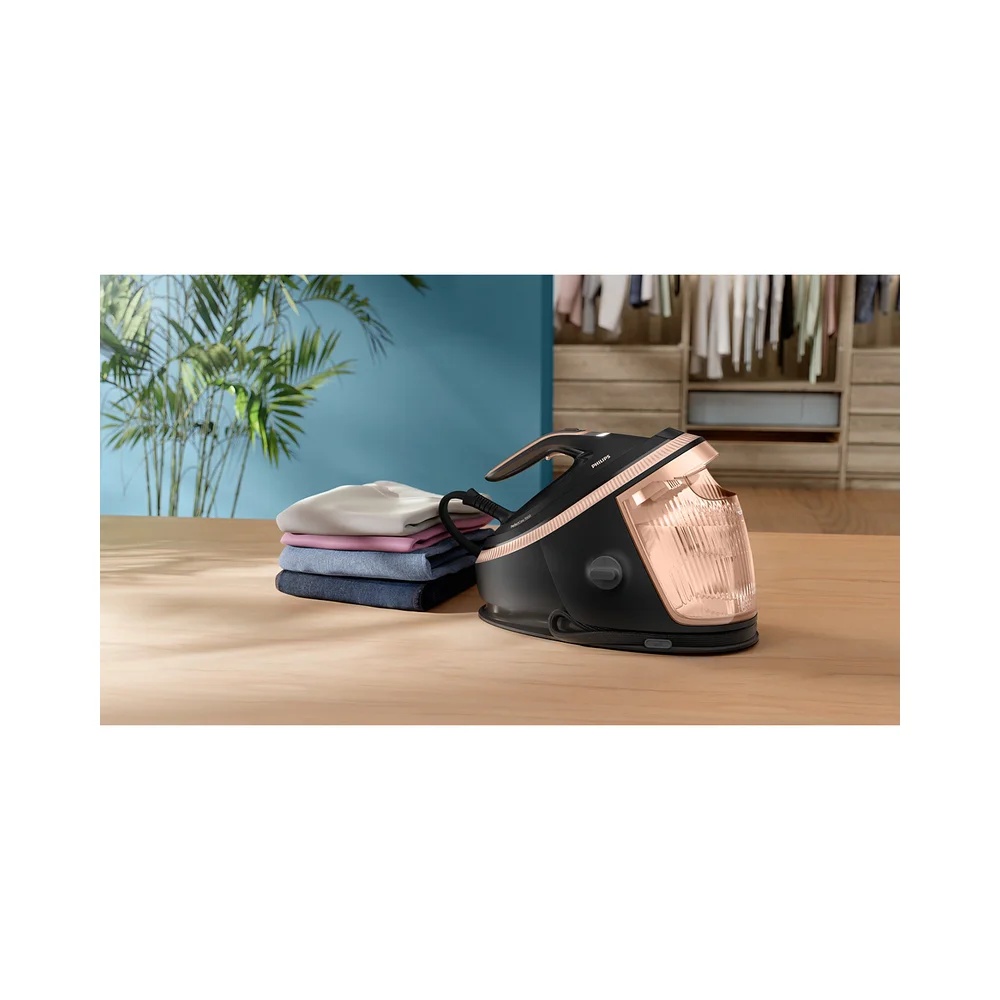 Parna postaja TurboPower za bolji doživljaj glačanja; snažniji mlaz pare bez prekida. Parna postaja TurboPower smanjuje pojavu mokrih točaka na vašim odjevnim predmetima tijekom glačanja*, tako da nema čekanja na sušenje.