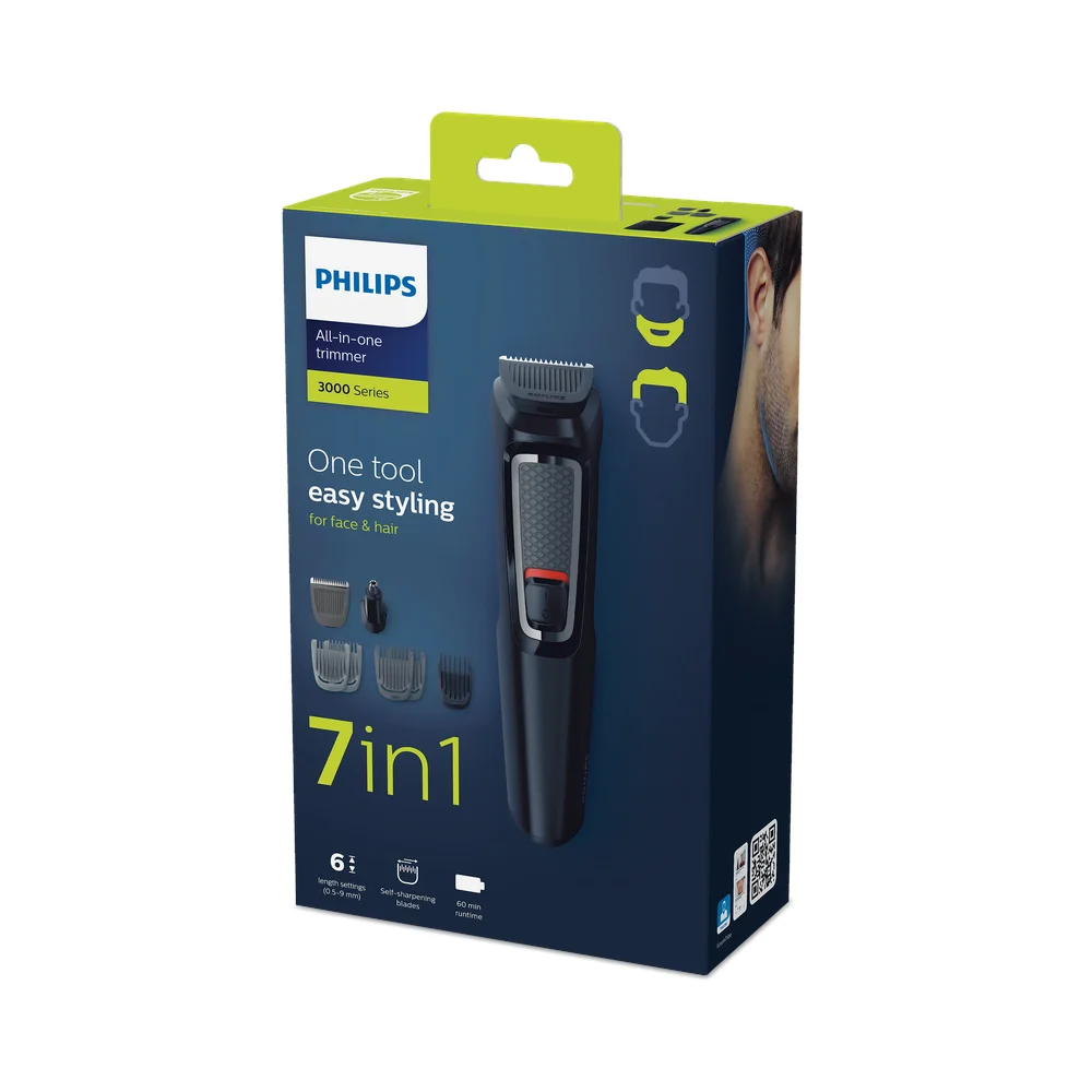 Višenamjenski trimer serije 3000 tvrtke Philips dolazi sa 7 nastavaka koji su dizajnirani za praktično oblikovanje dlačica na licu i šišanje kose.