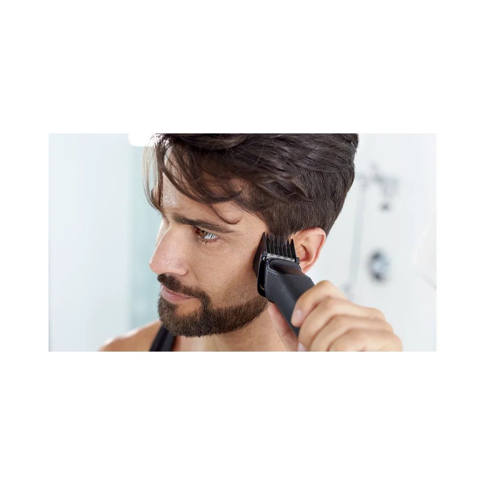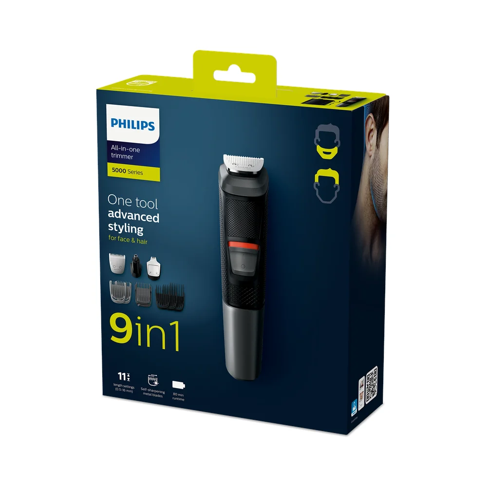 Postignite poseban izgled pomoću ovog svestranog trimera koji uključuje 9 kvalitetnih nastavaka za oblikovanje brade i kose. DualCut oštrice jamče maksimalnu preciznost, a gumena drška koja se ne skliže jamči veću udobnost i bolju kontrolu.