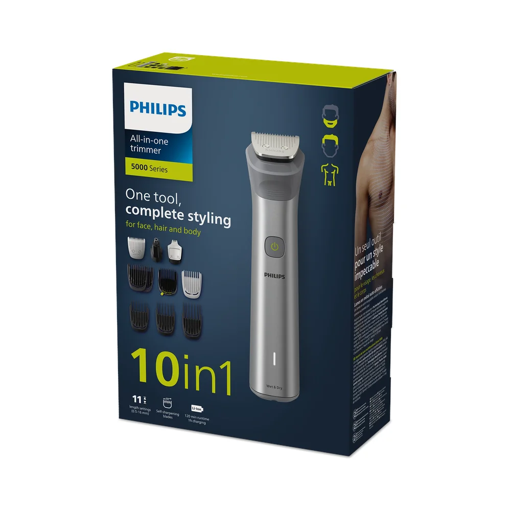 Postignite poseban izgled ovim svestranim trimerom koji obuhvaća 10 kvalitetnih alata za lice, glavu i tijelo. Oštrice od nehrđajućeg čelika koje se same oštre ostat će oštre kao prvoga dana bez podmazivanja i nastavit će pružati precizno podrezivanje.