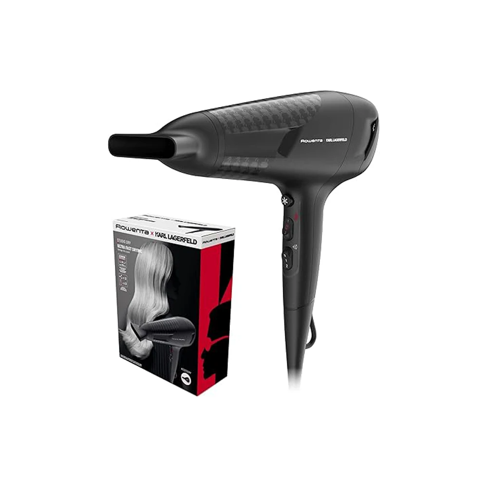 Rowenta x KARL LARGERFELD Studio Fen nudi efikasne i pouzdane performanse za svakodnevno sušenje bez ikakvih problema. Visokoefikasno sušenje na dohvat ruke zahvaljujući tehnologiji Effiwatts koja štedi energiju, dok šest postavki brzine/temperature stavljaju vam prilagođenu kontrolu stilizovanja na dohvat ruke. Otkrijte pouzdane rezultate sušenja i pametne funkcije dizajnirane da nude lakšu rutinu ljepote iz dana u dan.